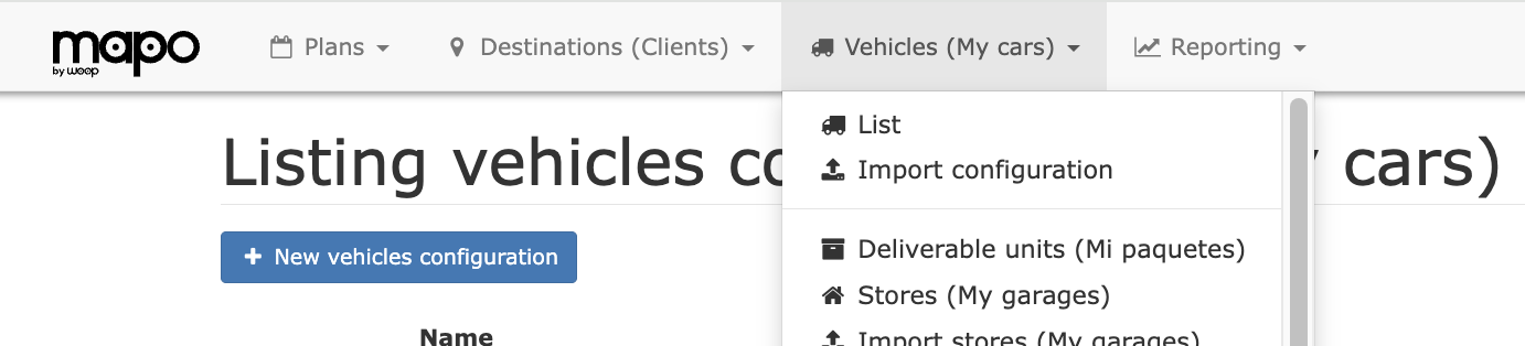 In the case of unique configuration, vehicles import replaces the existing vehicles configuration “Default”. In the case of multiple configuration, the import adds a new configuration.