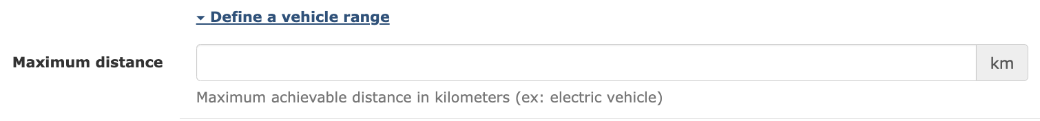Maximum distance: set the maximum distance that your vehicle can travel, expressed in km,
