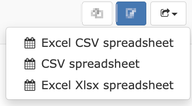 On Vehicles List, a vehicles configuration is exportable clicking on the drop down menu . Two formats are proposed: CSV or Excel spreadsheet.