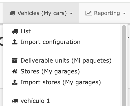 In case of unique configuration, clicking on the Vehicle menu, the vehicles list displays in the drop-down menu .