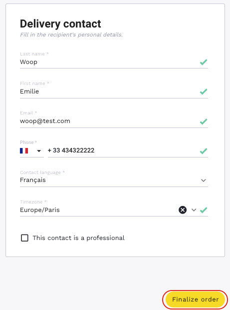 Once the modifications are done, click on "Finalize the order".