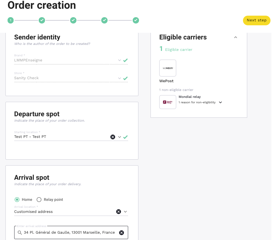 The page of "Order creation" will be displayed.