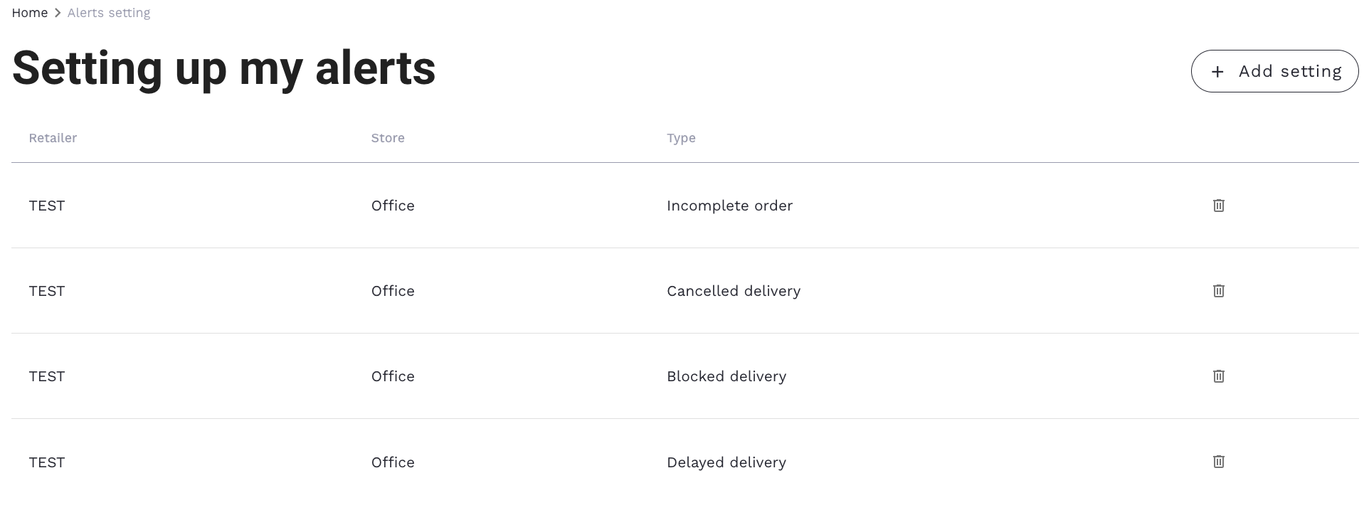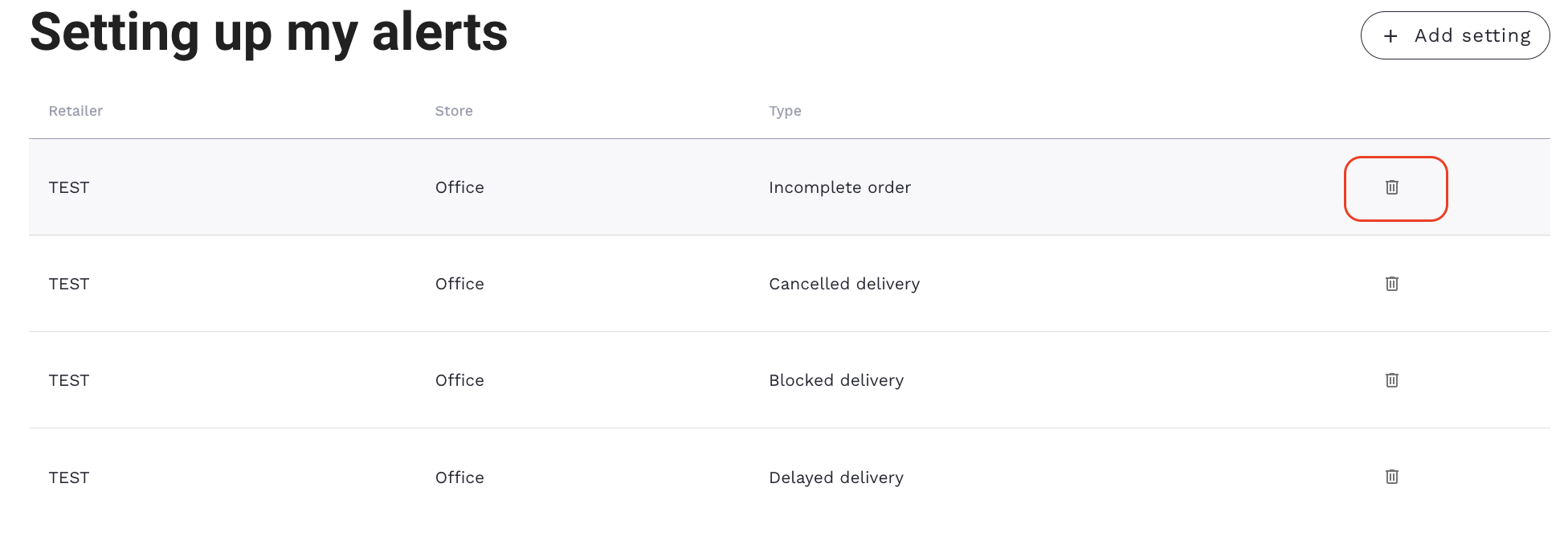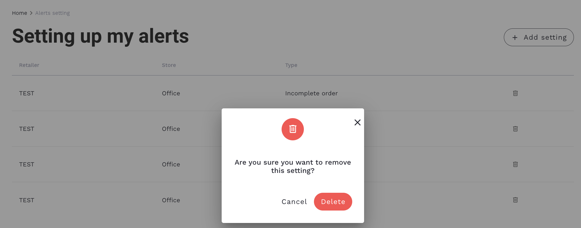 A pop-up window will ask you to confirm the deletion of the selected alert.