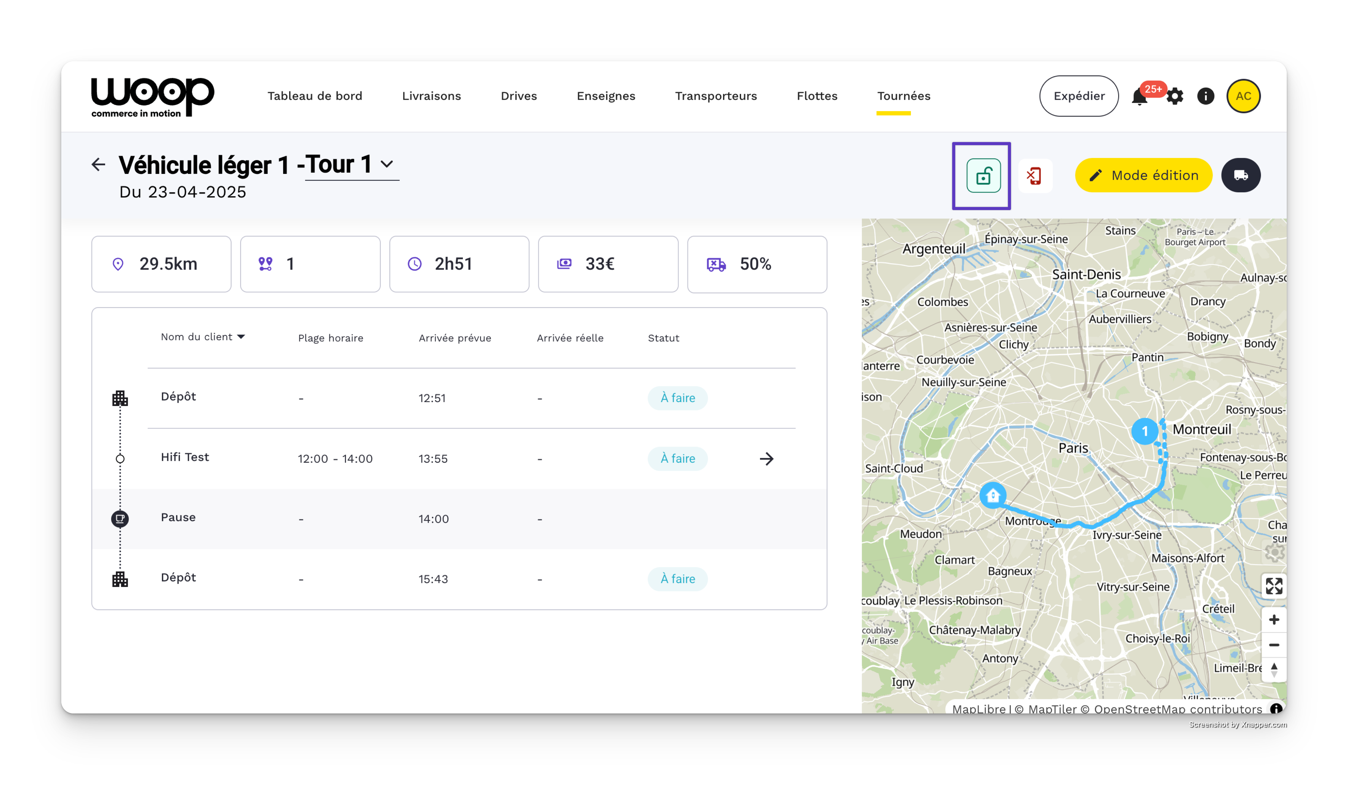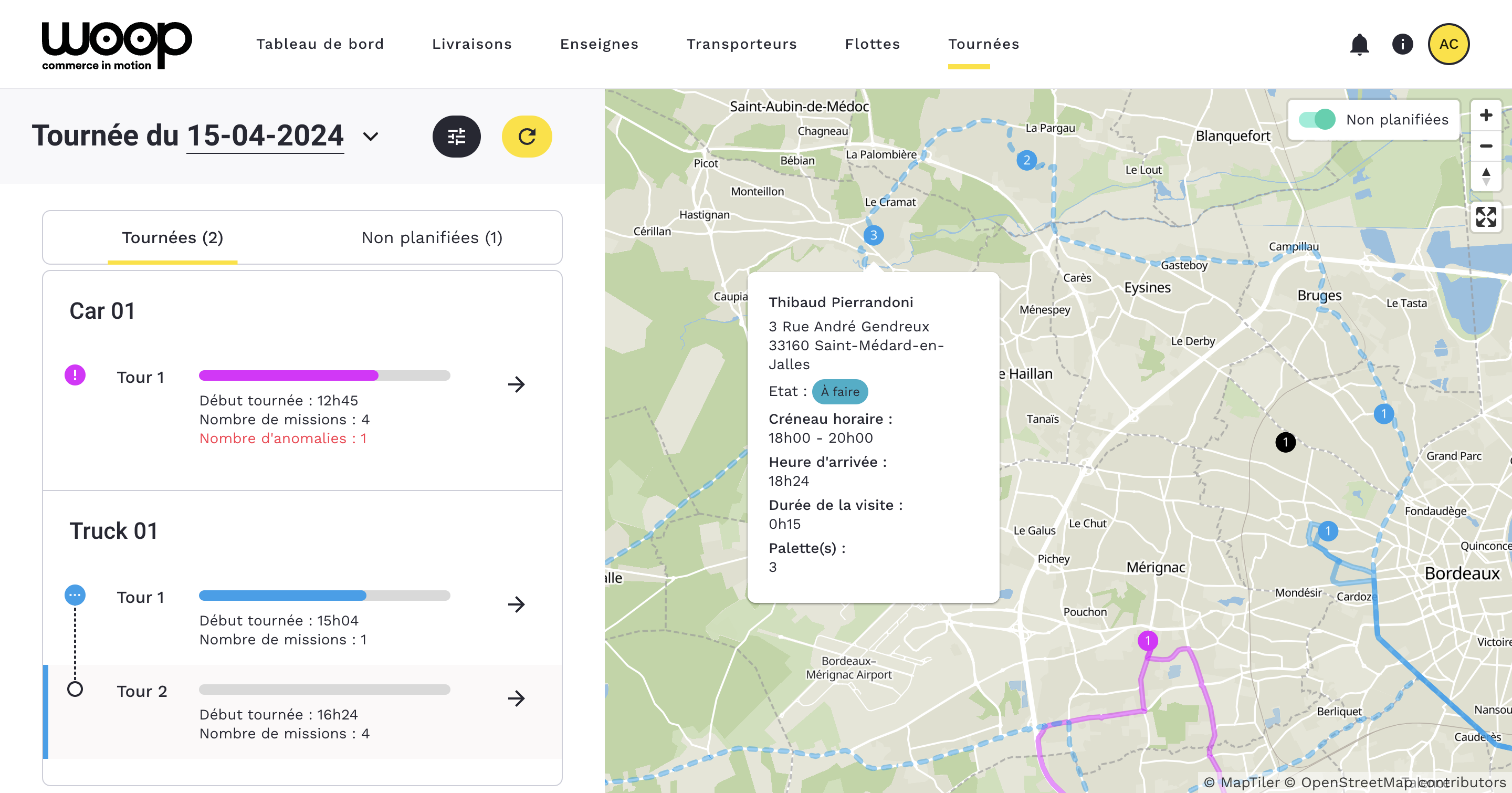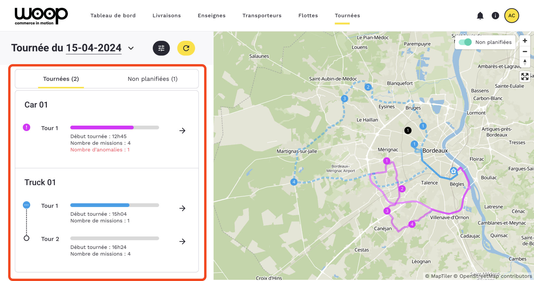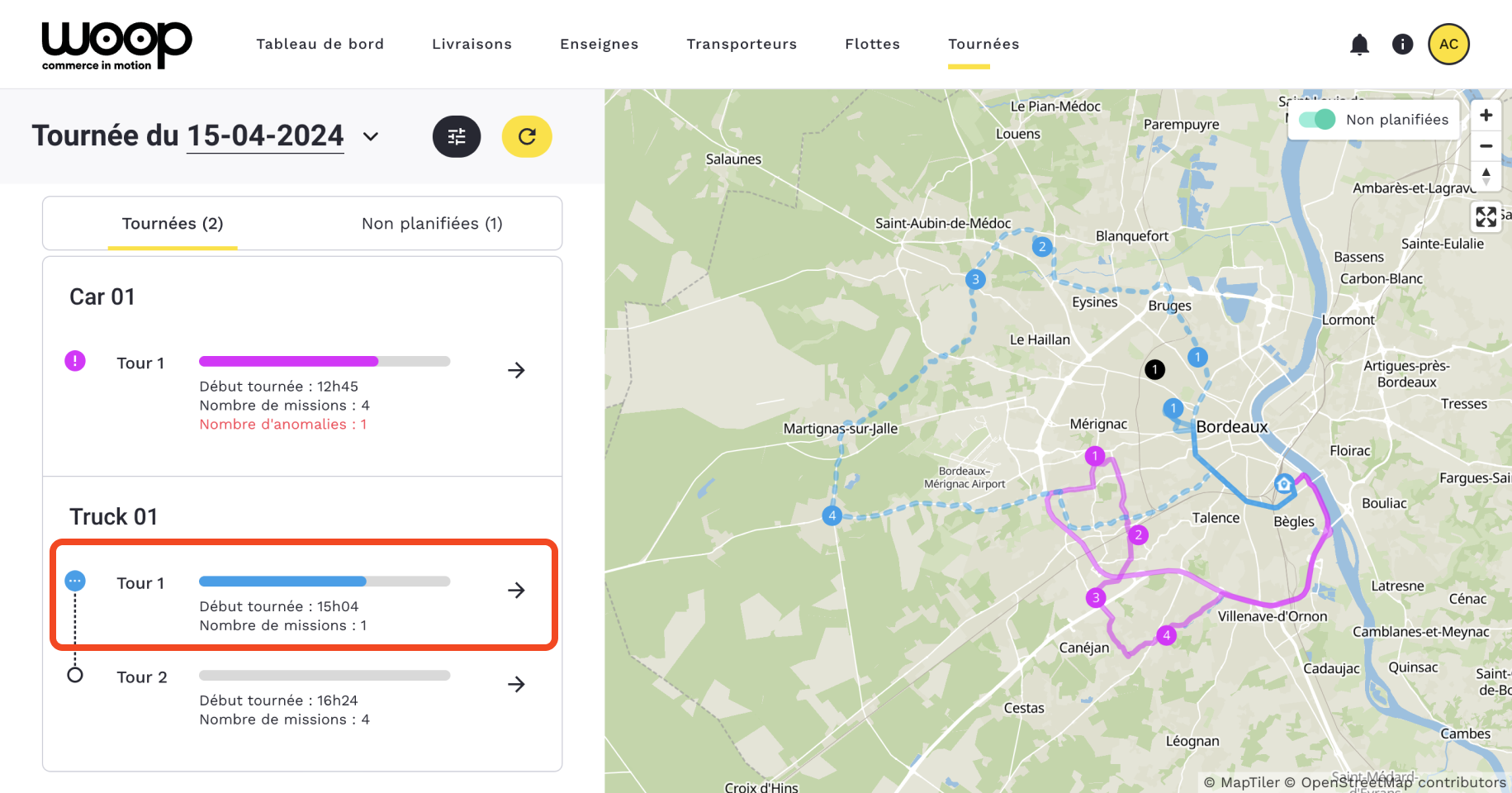 With the Tour visualisation module, you can manage the planning and execution of your tours.