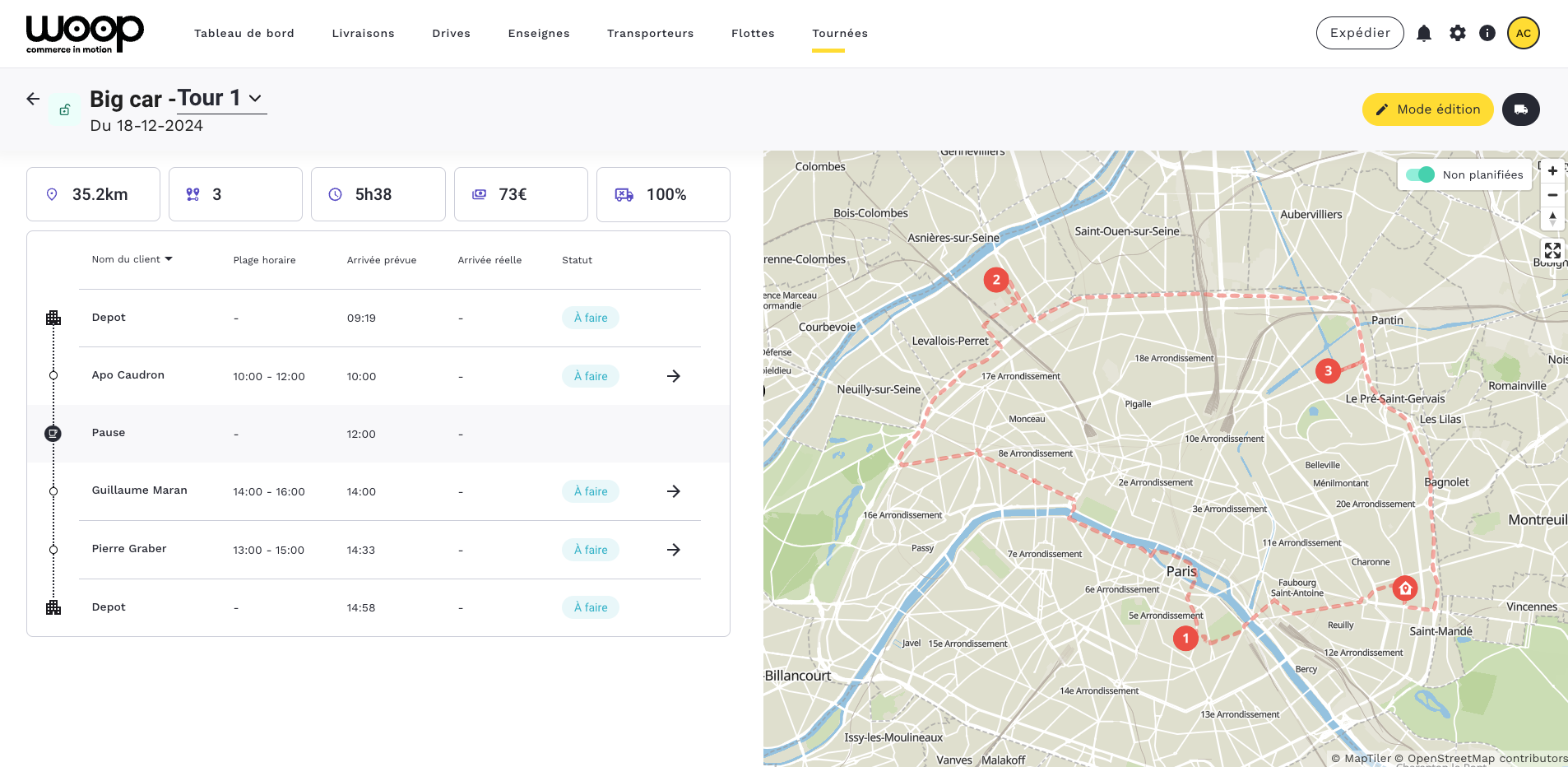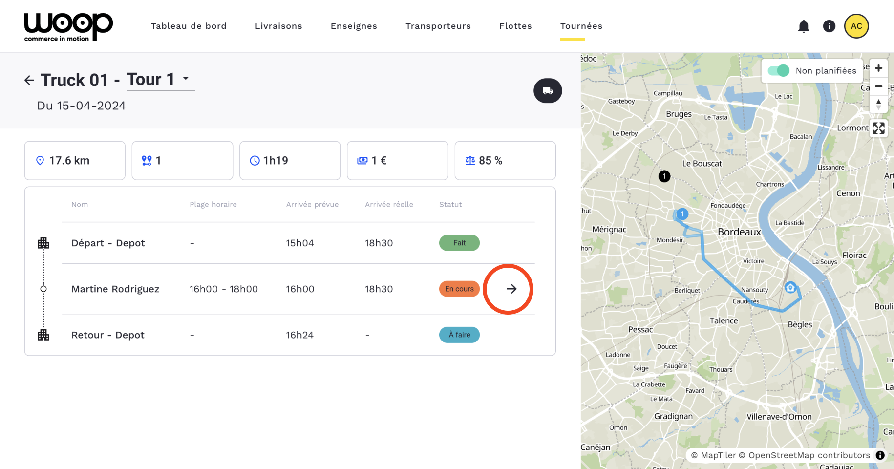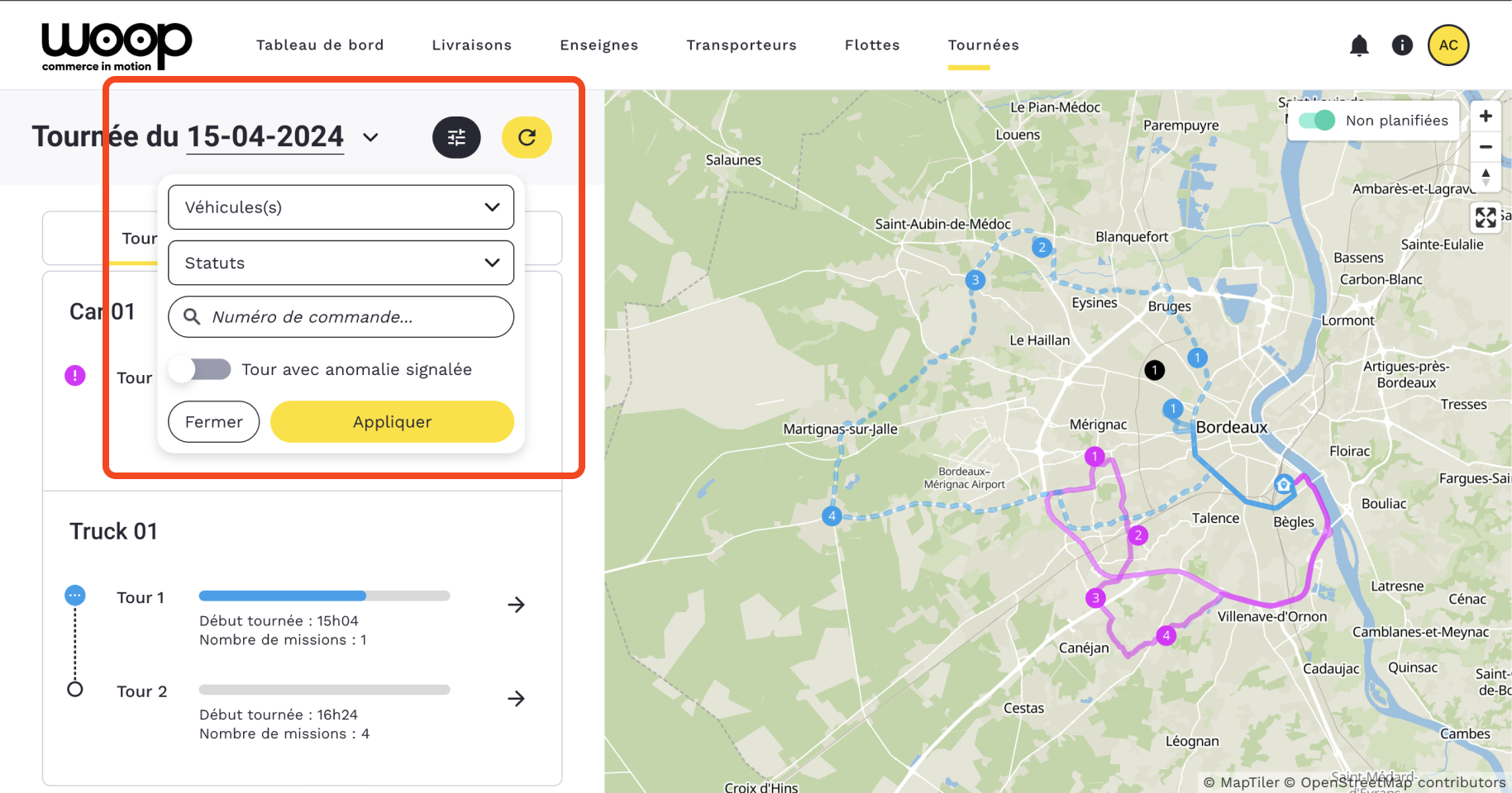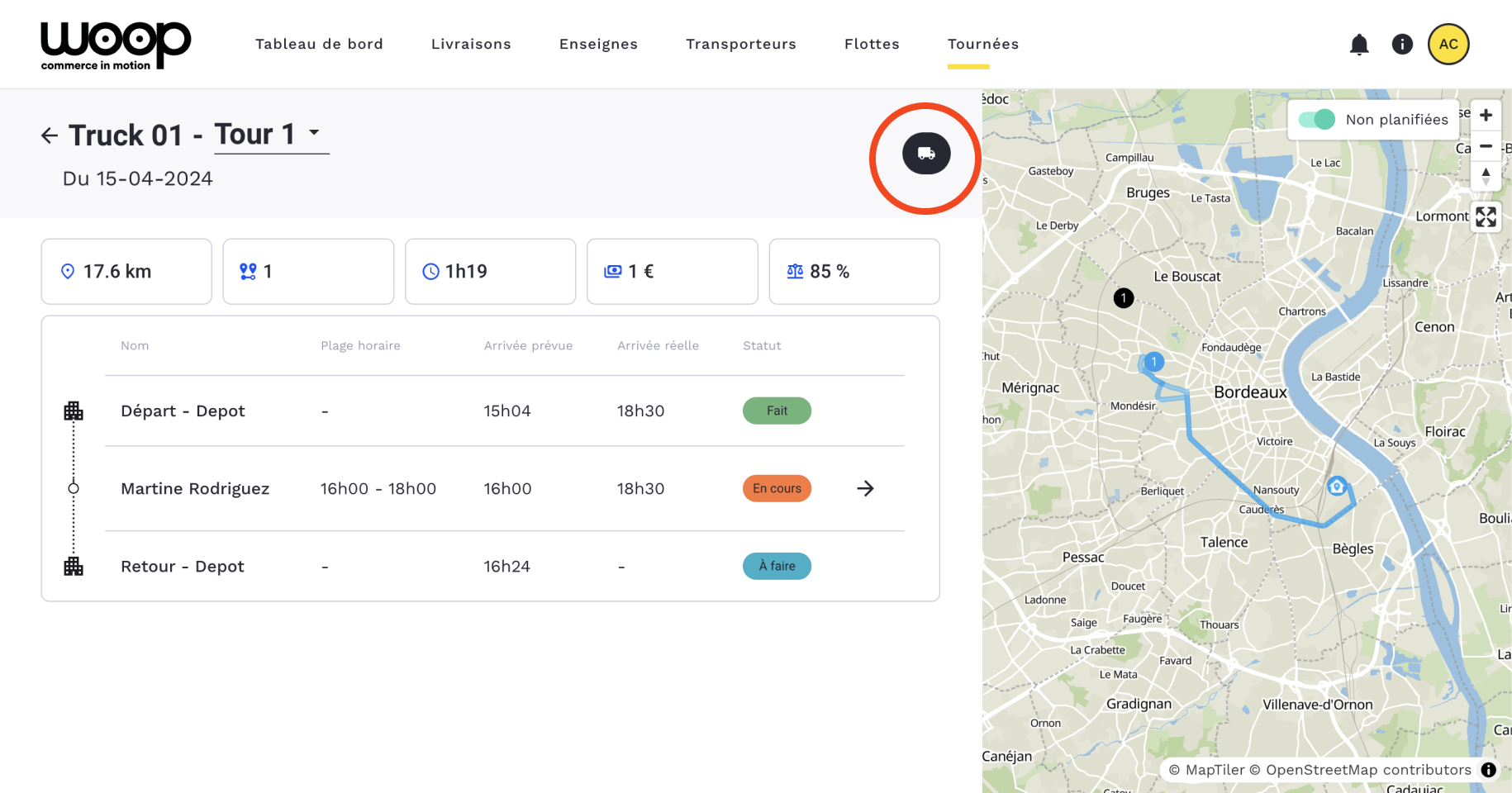 With the Tour visualisation module, you can manage the planning and execution of your tours.