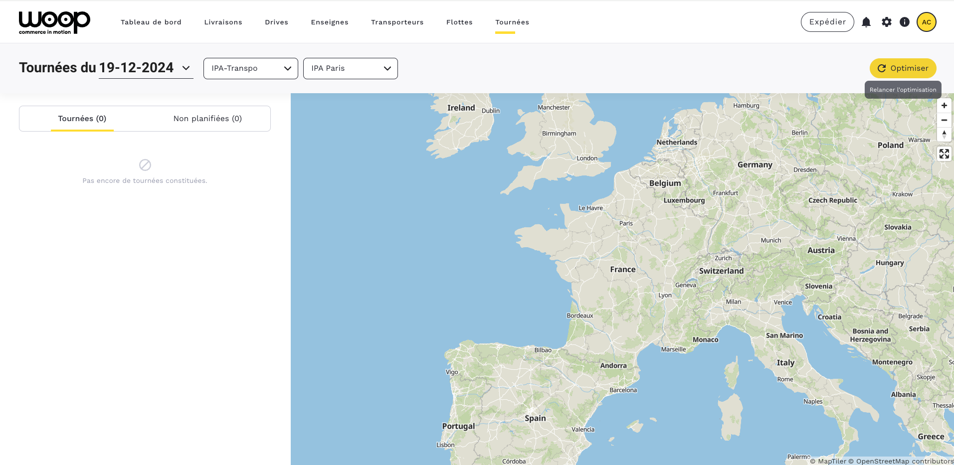 If your routes are already composed but you wish to relaunch an optimisation, you can do so via the same "optimise" button.