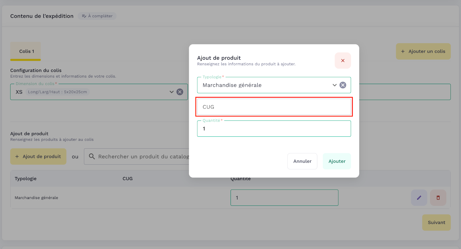 The CUG (Unit Management Code) field allows you to add the CUG code when adding a product.