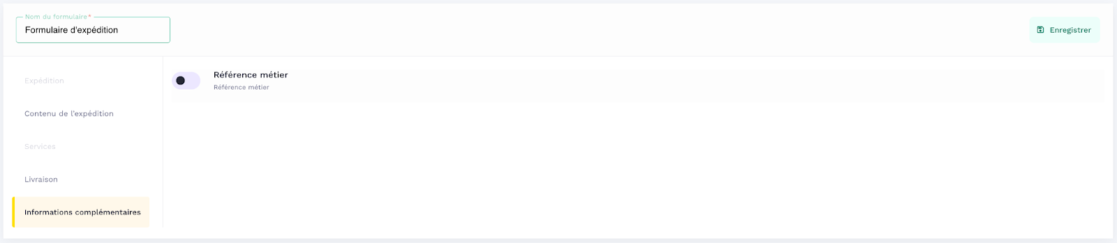 After choosing a title for your shipping form and a type, you will be able to activate several elements. Each of these elements, described below, determines the display of a dedicated block in the form.