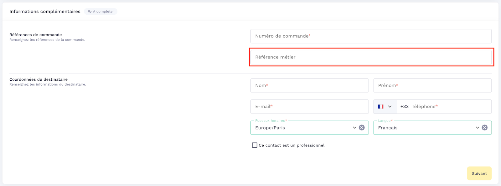 The business reference allows you to add a field dedicated to your internal references.