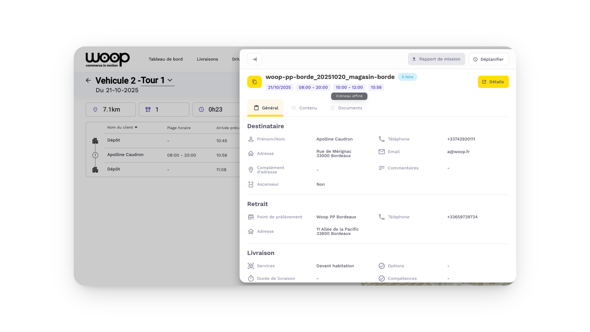 Slot refinement allows you to automatically reduce the delivery or intervention time window of a mission, based on the actual estimated time of arrival (ETA) within the route.
