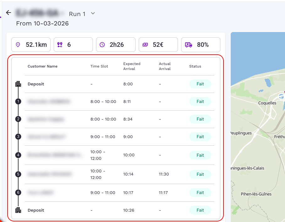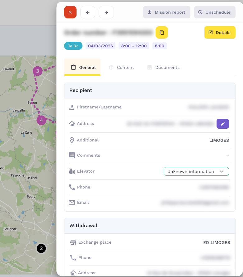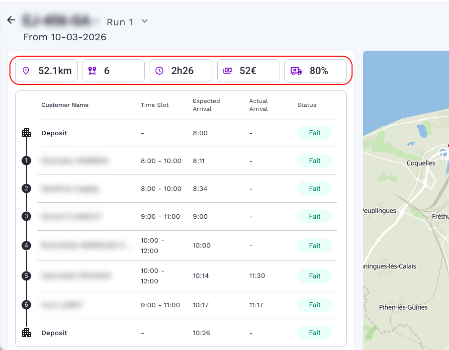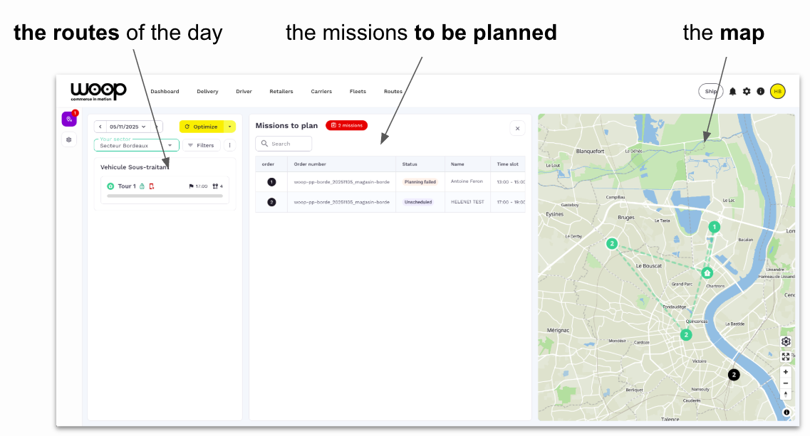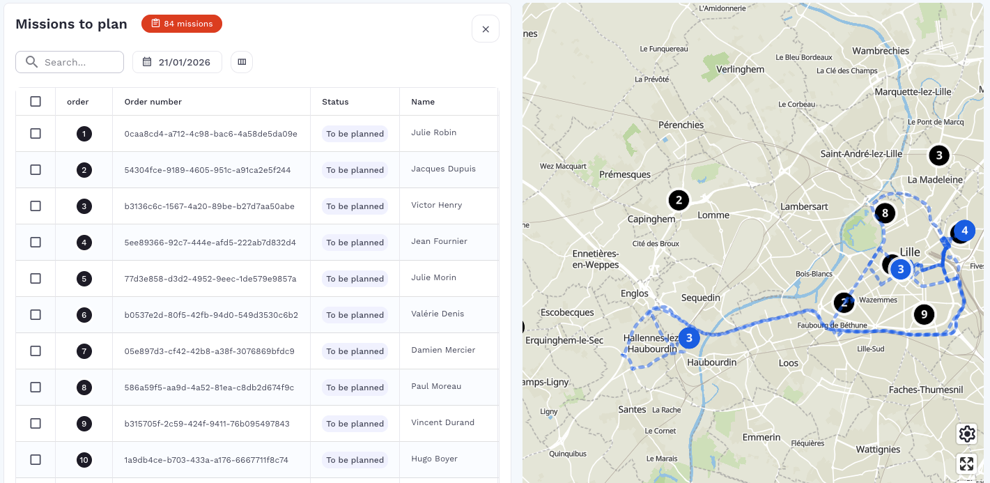 This interface gives you real-time visibility of the status of your routes, as well as your missions to be scheduled, making it easier to plan your day.