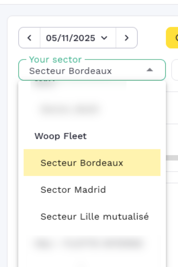 Change sector: To change sector, click on the "Your sector" selector and choose a sector from the dropdown list. The associated routes will be displayed automatically.