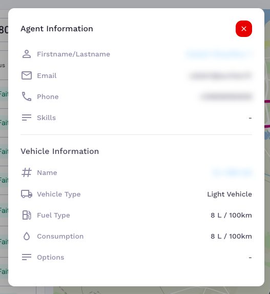 From the route detail, you can access the detail of the vehicle and agent in charge of this route by clicking the dedicated button.