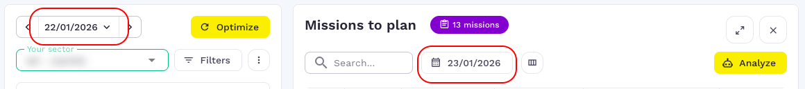 Example: "I'm looking at my routes for 22/01, but I want to display the missions to schedule from 23/01 so I can bring them forward."