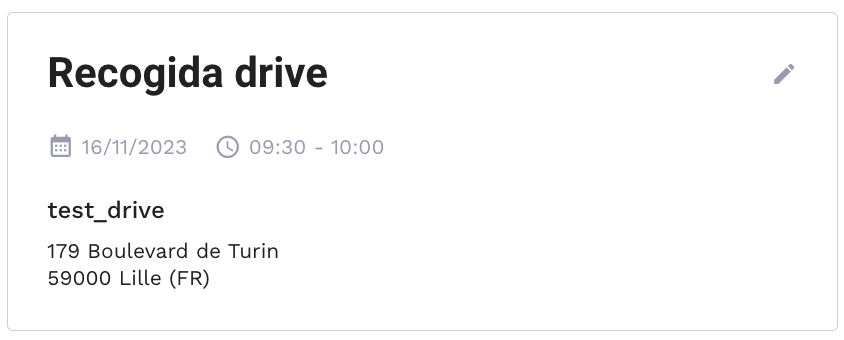 - Recogida Drive: Según el método de recogida (programada y estándar), se encuentra disponible el botón «Modificar» (lápiz).