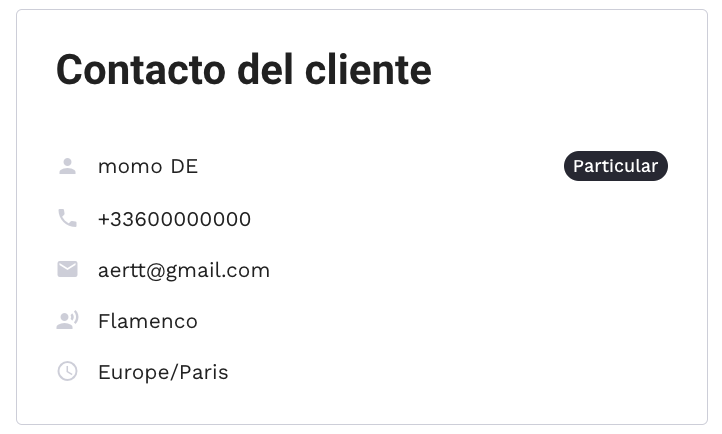 - Contacto del cliente: Muestra los datos del cliente que ha realizado la recogida. Para acceder a esta información, basta con hacer clic en «Mostrar la información».