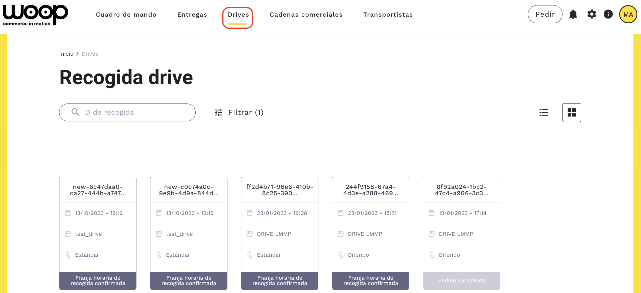 A continuación, haz clic en «Aplicar», en la esquina inferior derecha, para visualizar el pedido o los pedidos del drive en cuestión.