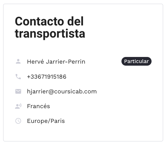 - Contacto del transportista: Se utiliza para mostrar los datos de contacto del transportista.