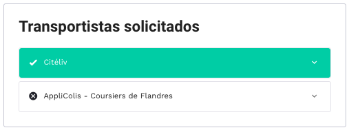 - Transportistas solicitados: Permite consultar los transportistas contactados y sus respuestas.