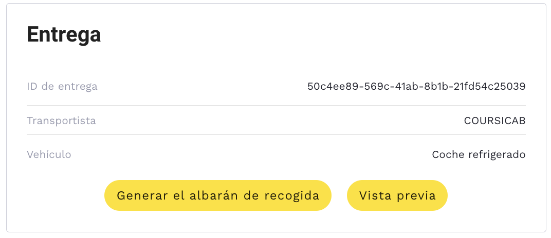 - Identificador de entrega: identificador de entrega del transportista