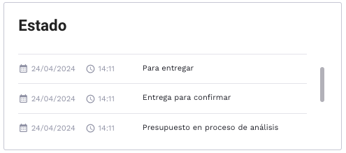 - Línea temporal: Indica el progreso de la entrega.