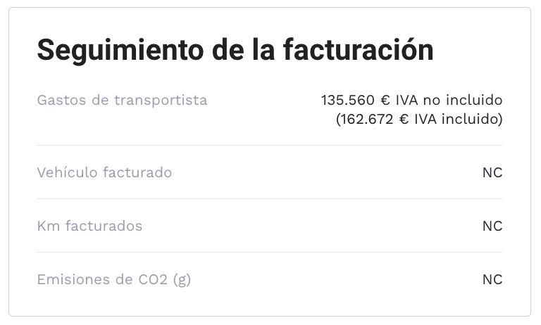 - Seguimiento de la facturación: Permite mostrar los gastos del transportista correspondientes al trayecto.