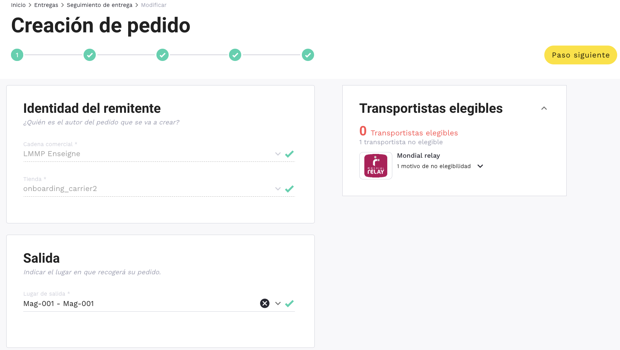 - Si el pedido se encuentra con un transportista asignado, dependerá del transportista asignado al pedido.