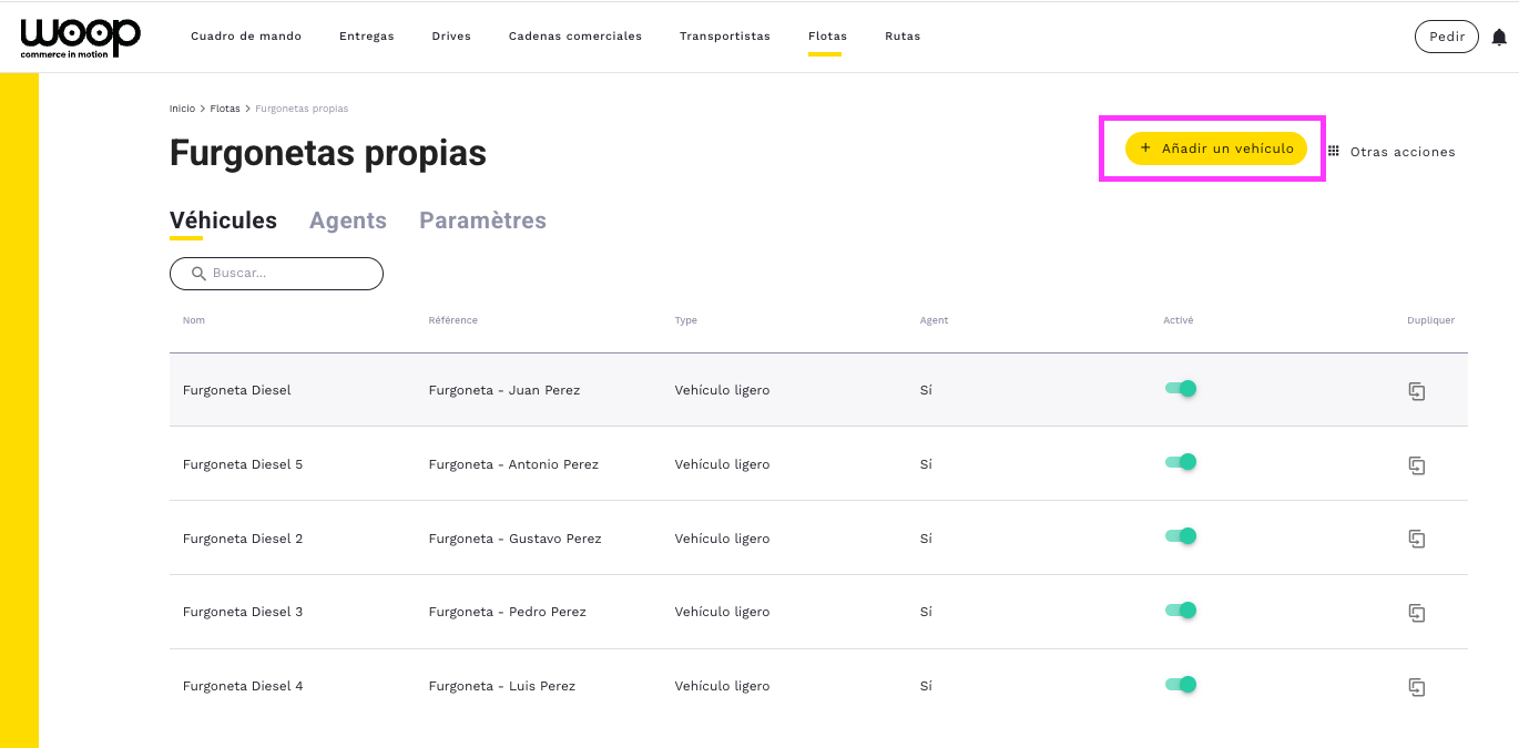 💡 Importante: Dado que un agente solo puede estar asociado a un vehículo, el agente no se copia en el vehículo duplicado. Es necesario asignarle manualmente otro agente para que el vehículo se tenga en cuenta en la optimización de las rutas.