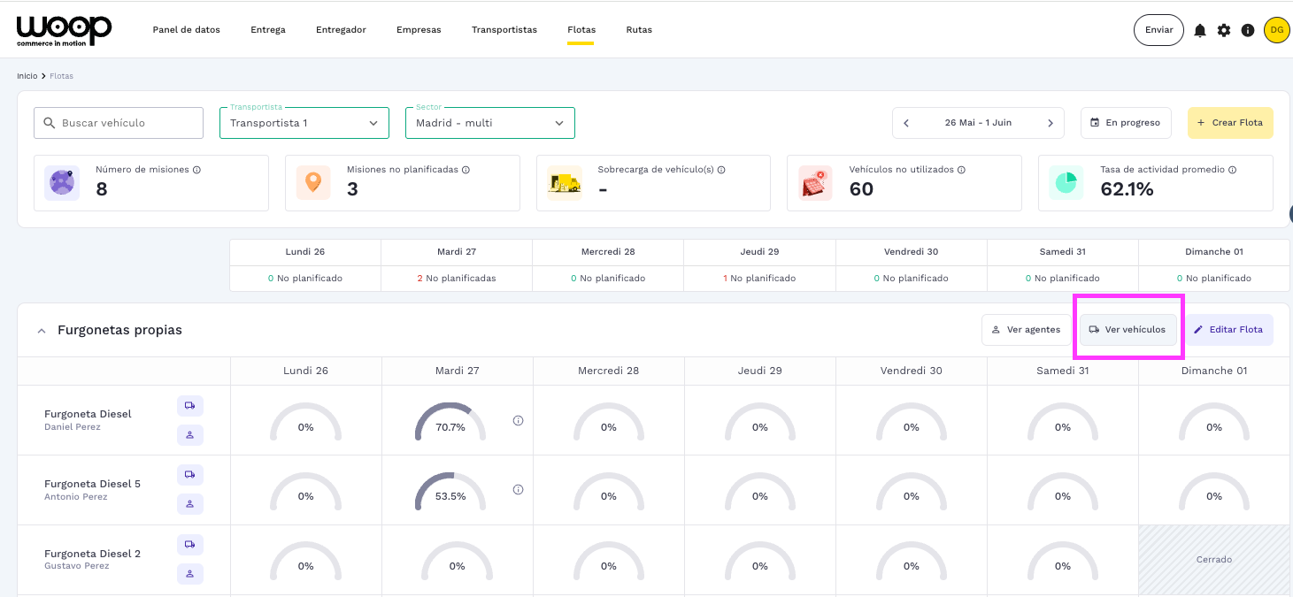 - En la página "flota", selecciona la flota deseada y hacer clic en "ver vehículos".