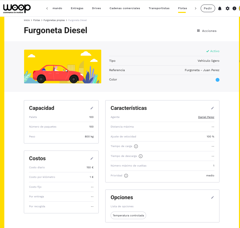 Cada vehículo incluye un conjunto de características que se tendrán en cuenta durante la optimización de las rutas.