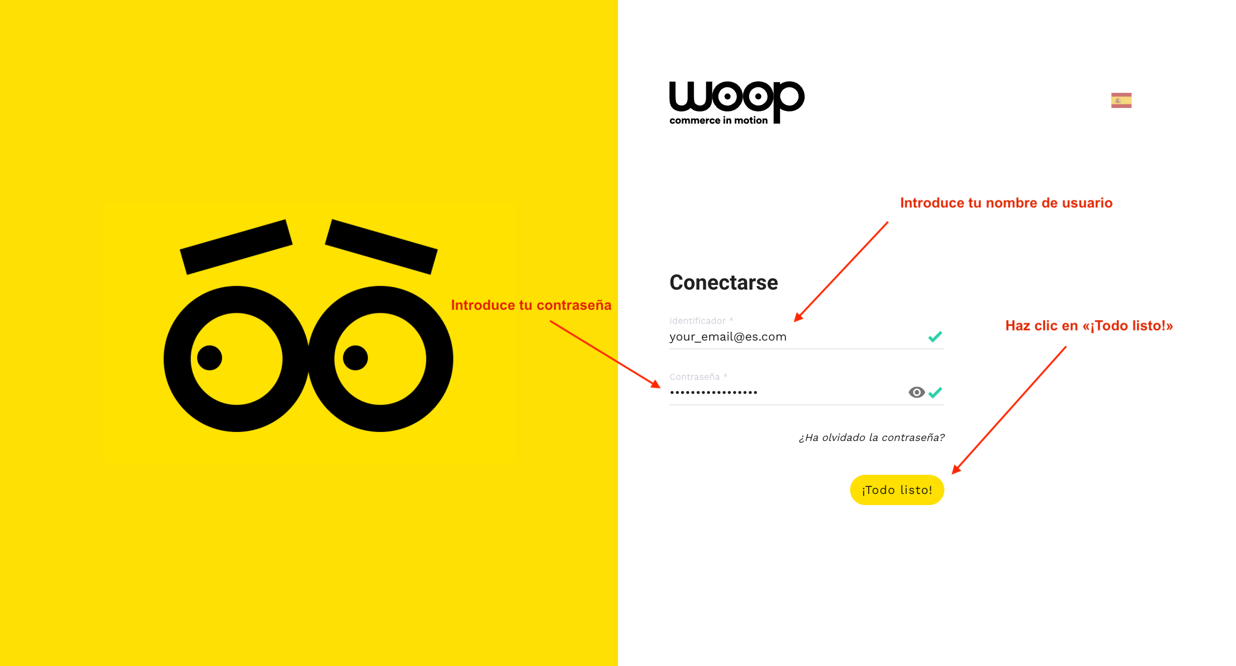 Abre la URL https://just.woopit.fr/login en el navegador y haz clic en «Conectarse».