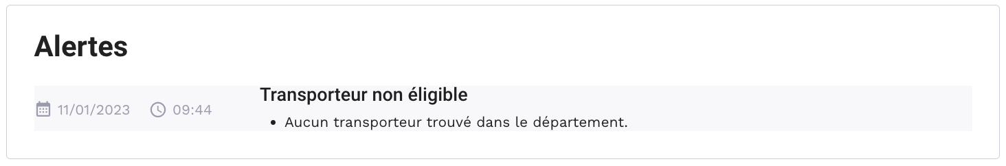Cela signifie qu'aucun transporteur n'a été appelé sur la commande pour effectuer la course.