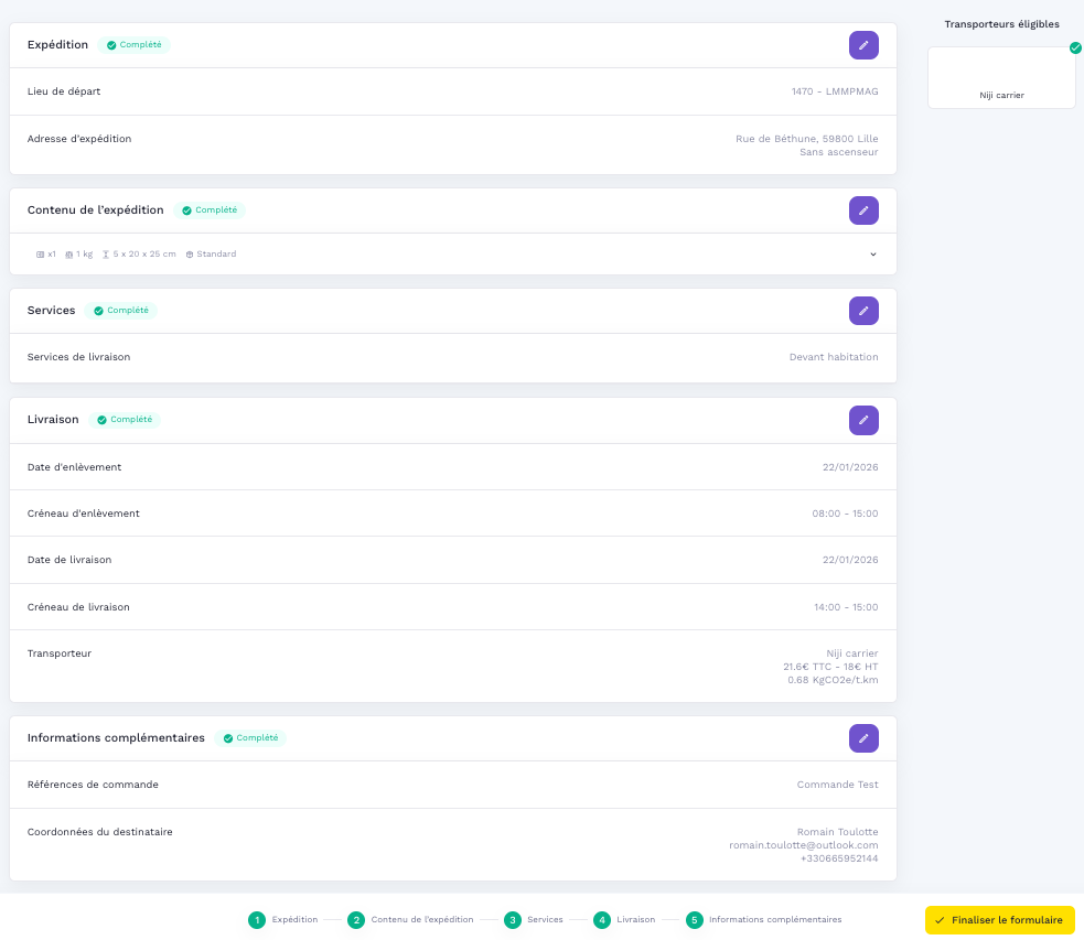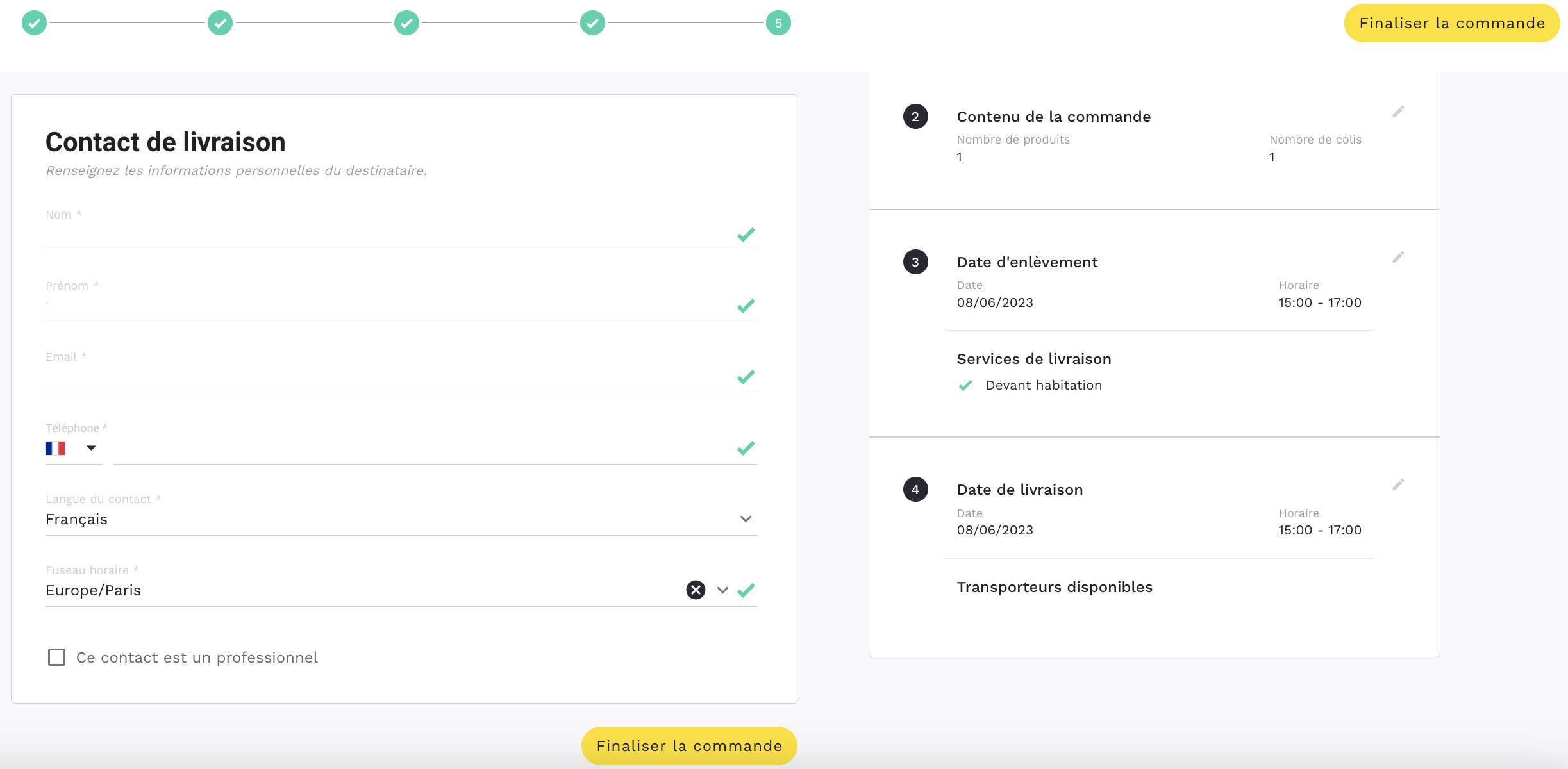 Une fois les modifications apportées, on clique sur "Finaliser la commande".