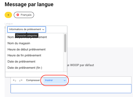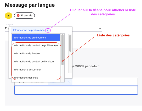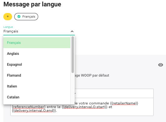 L'enseigne peut choisir d'utiliser les textes par défaut proposés par Woop ou saisir son propre message.