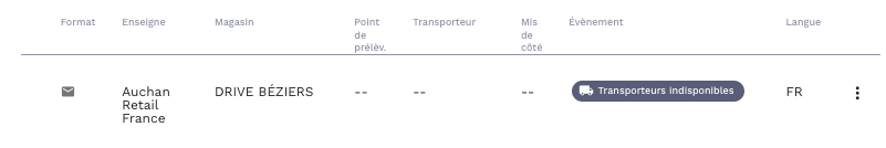 Exemple de notifications sms et e-mail paramétrées pour un même transporteur :