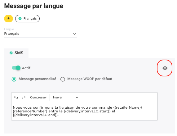 Si on clique sur le petit oeil, nous pouvons visualiser le message à envoyer.