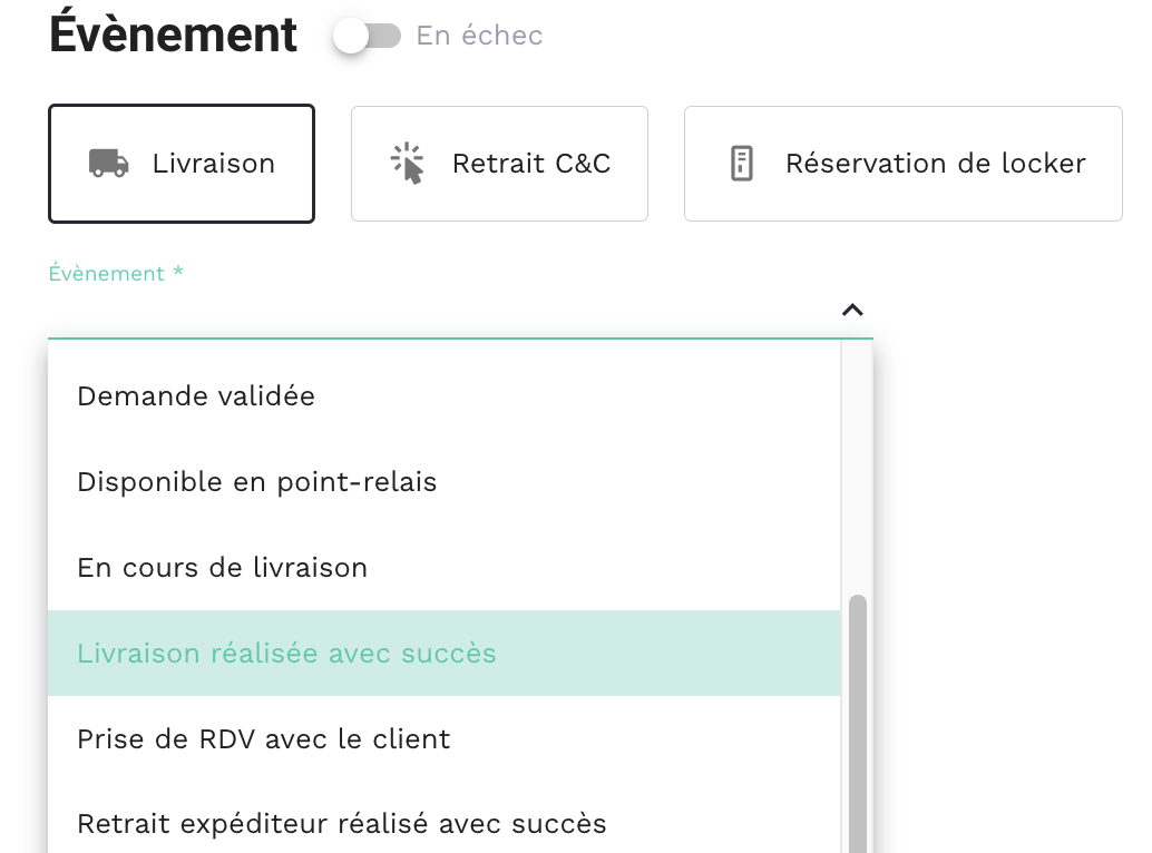 Woop assure le mapping entre les événements de livraison du transporteur et ses propres statuts. Cela permet à l'enseigne d'avoir une communication uniforme quel que soit le transporteur sollicité sans avoir à gérer de multiples configurations.