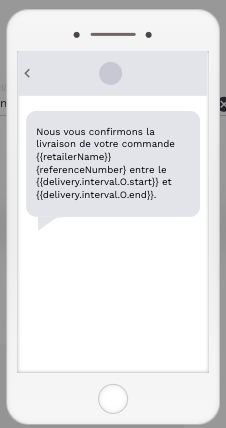 Exemple d'une notification sms paramétrée en français :