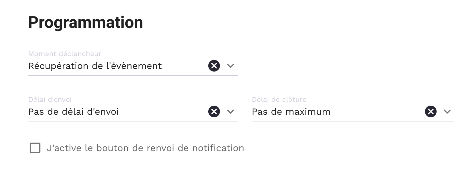 Il est possible de programmer le déclenchement des notifications sur la base de statut ou de date.