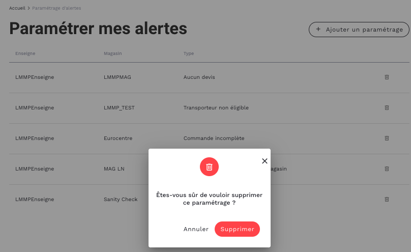 Une fenêtre va apparaître en vous demandant de valider la suppression de l'alerte choisie.