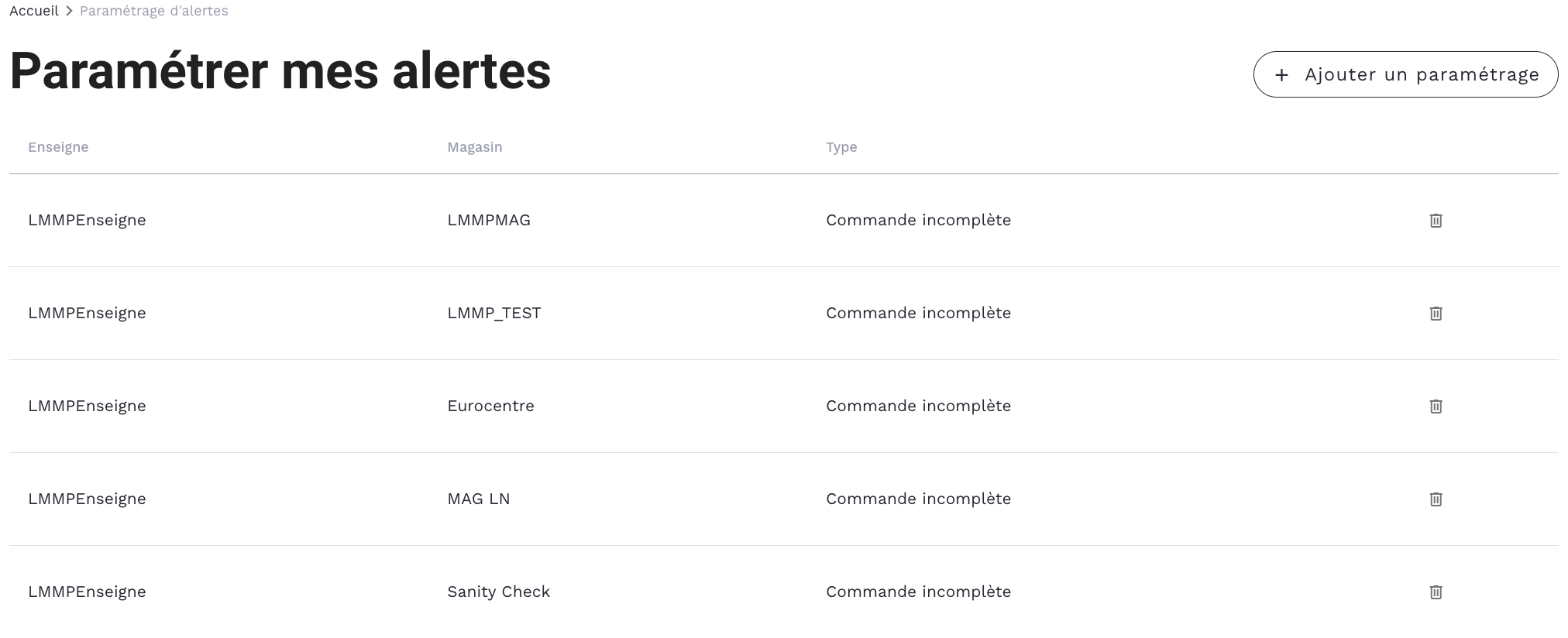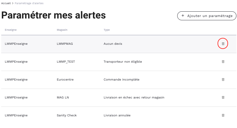 Pour ce faire, cliquez sur la poubelle à droite de votre alerte.