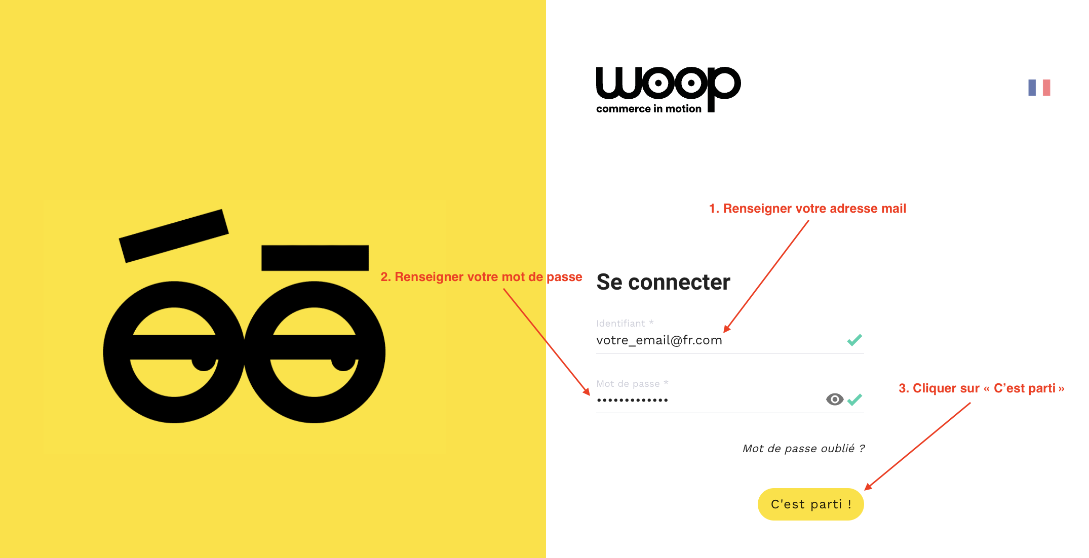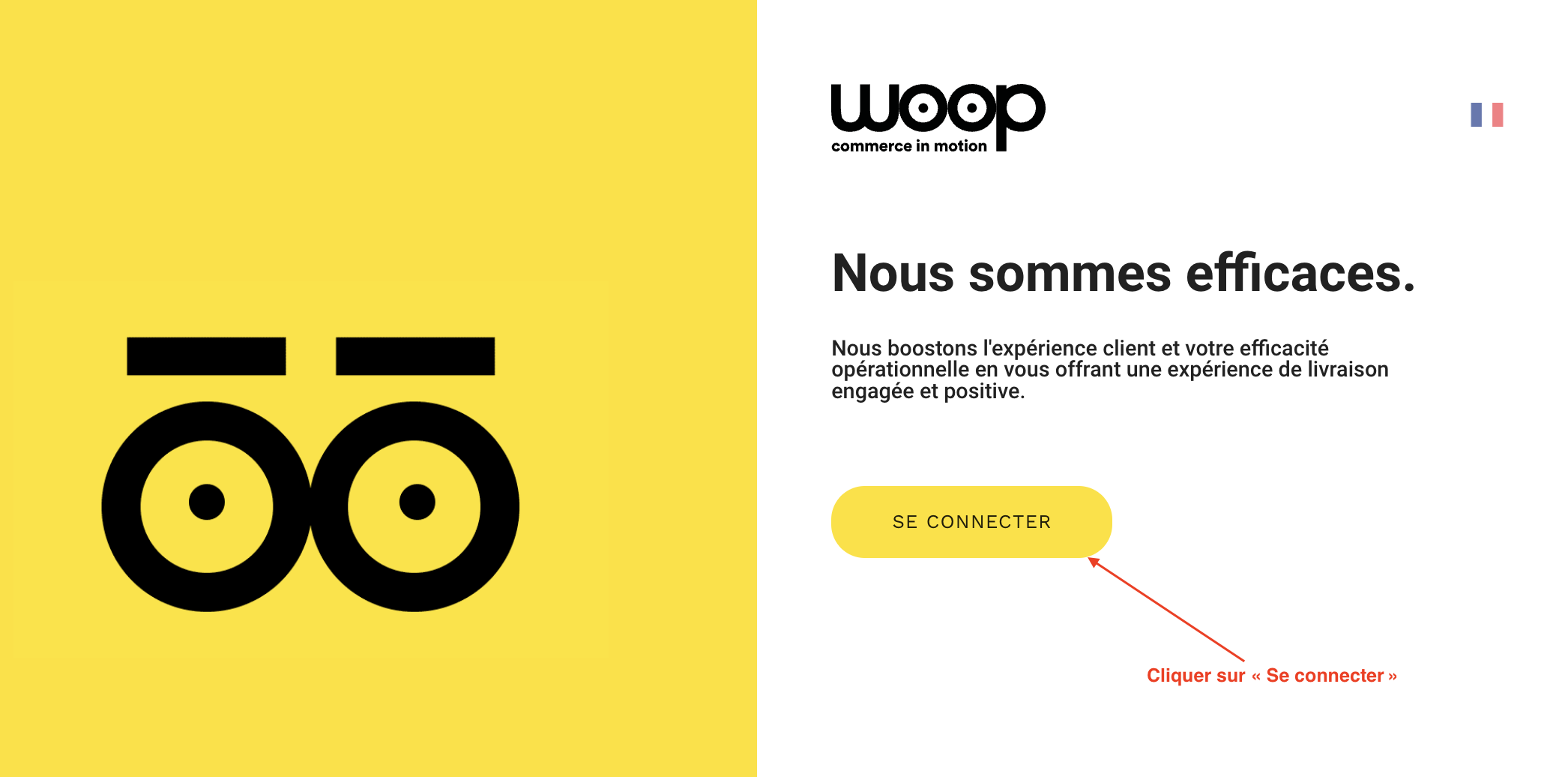 Ouvrir l’URL https://just.woopit.fr/login dans le navigateur et cliquer sur “Se connecter”.