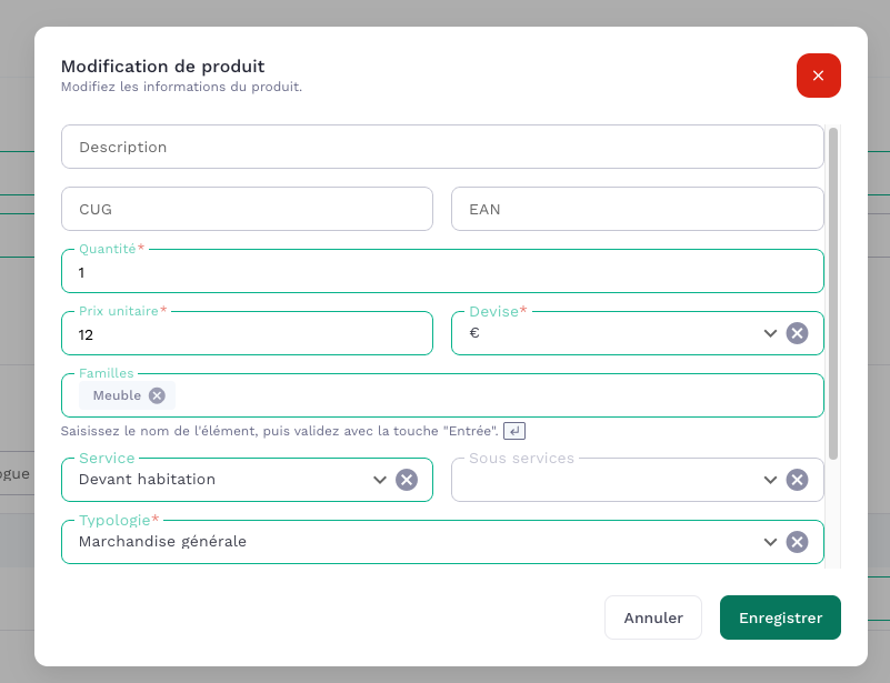 đAttributs produit dans le formulaire d'expĂ©dition (Prix, Services et familles)