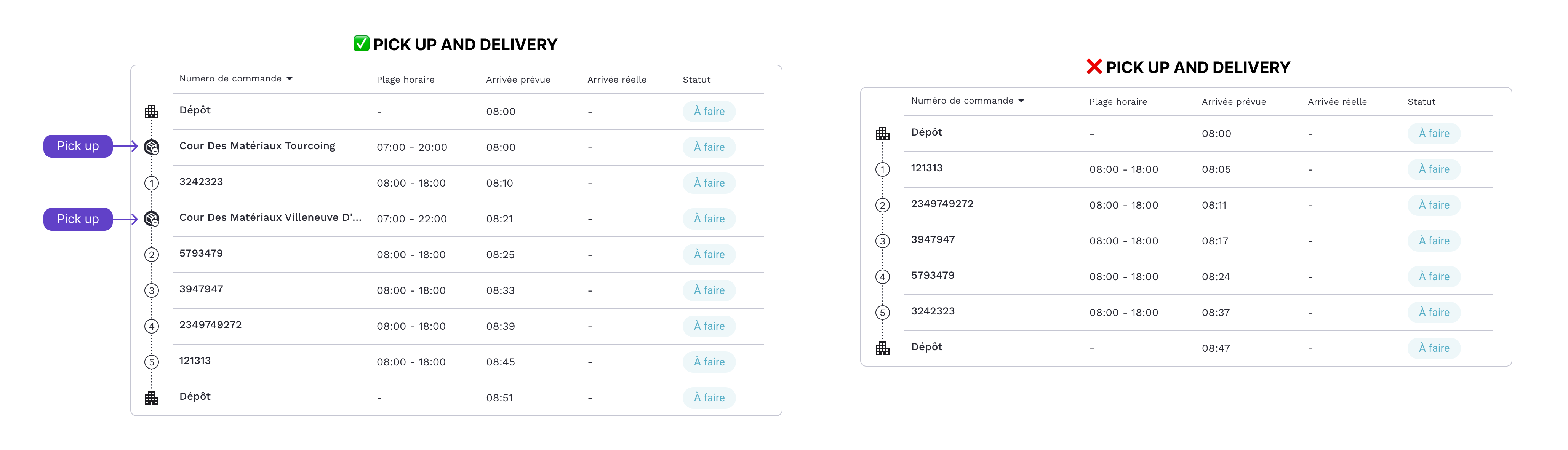 Chaque commande contient un point de départ (prélèvement) et un point d'arrivée (livraison).