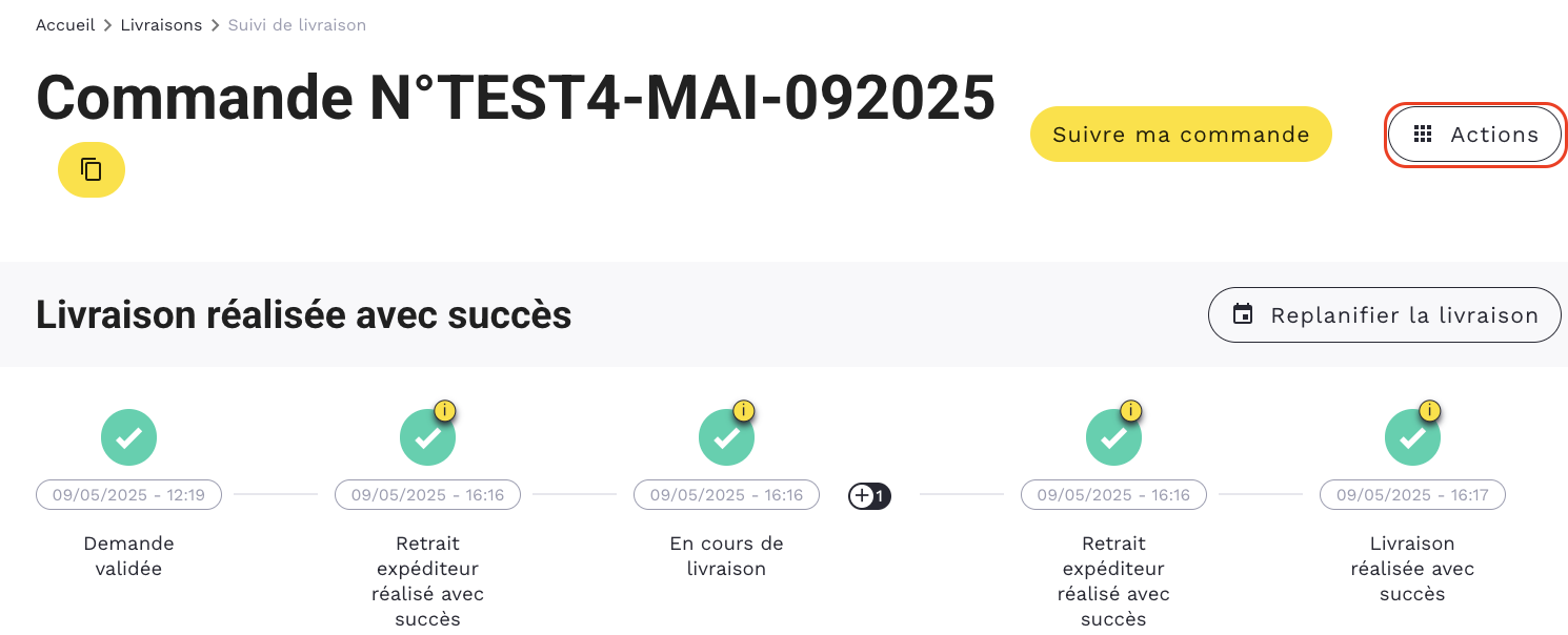 - Le nouveau formulaire d’expédition/tunnel de commande s’ouvre avec les mêmes informations que dans la commande initiale
