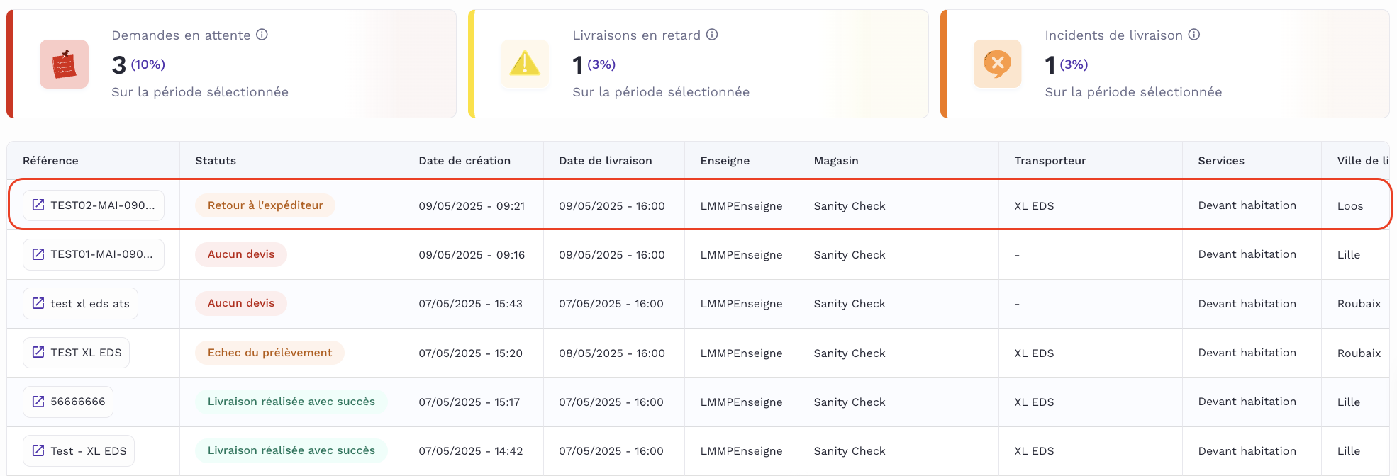 - Trouvez votre commande depuis la page d’accueil (en cherchant par le numéro de commande exacte ou depuis les filtres avancés). Allez sur la page détail de la commande que vous voulez dupliquer (en cliquant sur la ligne concernée).