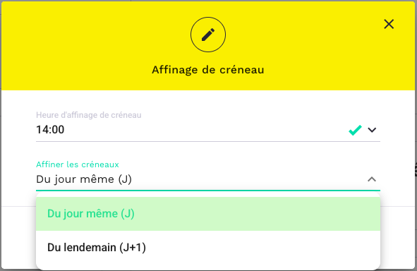 L’affinage de créneau permet de réduire automatiquement la plage horaire de livraison ou d’intervention d’une mission, en se basant sur l’heure estimée d’arrivée réelle (ETA) dans la tournée.